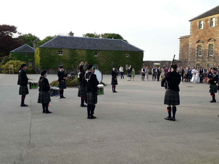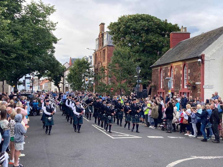 Performing with Haddington Pipe Band and the Dunedin Dancers “Down the Street” after the North Berwick Highland Games