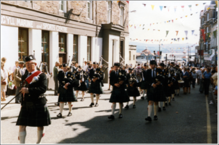 The Burgh Piper - The original piper was employed in the 1740’s. The Band revived this in the late 70’s playing curfew on the harbour wall.